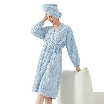 Wholesale Soft Microfiber Coral Fleece Bathrobe Long Thermal Pajamas for Adults Beauty Salon and Home Use for Women