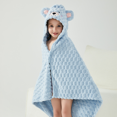 Sıcak satış karikatür hayvan kapşonlu yumuşak mercan polar banyo havlusu çocuklar için çocuk bebekler için yüksek kalite kapşonlu pelerin banyo